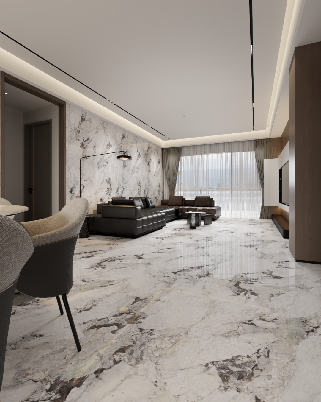 典雅从容的视觉盛宴,悄然触动心底的柔情。流畅婉约天然石材肌理,静谧深邃的空间意境,在不经意间唤起内心的共鸣。